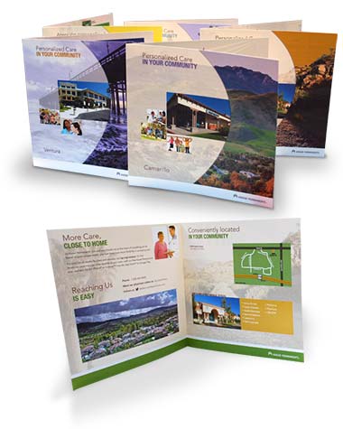 HWDS was commissioned by the Kaiser Permanente Woodland Hills Medical Center to create a unique family of marketing brochures for facilities in Ventura County, CA. We developed a beautiful series of brochures with a theme of “Personalized Care in Your Community.” In each brochure, we combined beautiful photos of the local community, photos of the facility and natural elements to give each brochure a very hometown feel. These brochures were very well-received and executive management at the medical center praised our work on the project.